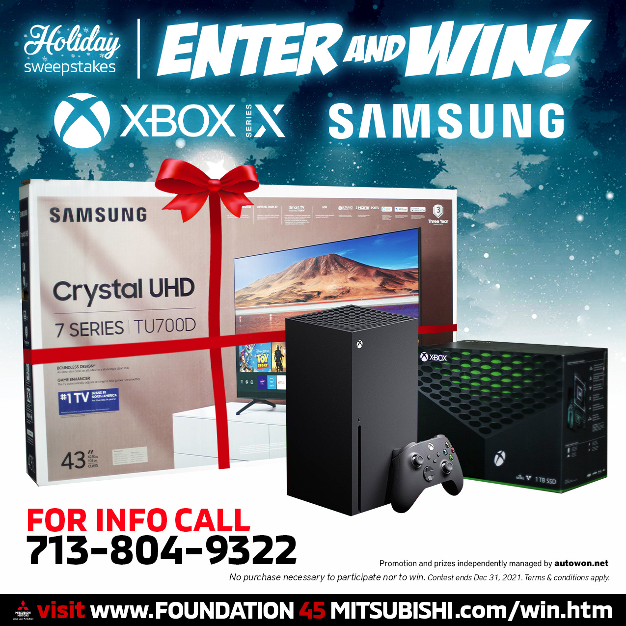 Foundation 45 Mitsubishi On Twitter Free Enter Amp Win 1 Lucky Person Wins An Xbox X And Samsung Tv For Free No Purchase Is Necessary To Enter Or Win Participate
